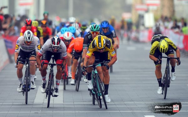 Il corridore più rapido è stato Dylan Groenewegen (Jumbo Visma), con Gaviria rimasto a non più di mezza ruota dall’atleta olandese.