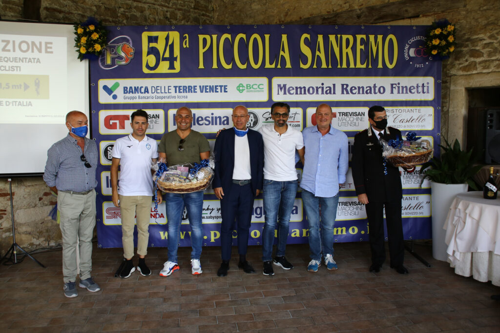Grazie sin da subito voglio dirlo alle istituzioni che sono al nostro fianco, agli sponsor che ci sostengono con grande passione, alle forze dell’ordine, alle associazioni che collaborano con noi e agli oltre 100 volontari che saranno impegnati domenica sul percorso per garantire la sicurezza degli atleti in corsa. Ripartiamo con cinque importanti novità: la prima è che da quest’anno la Piccola Sanremo che si è spostat a a fine estate metterà in palio il Memorial Renato Finetti in ricordo del nostro grandissimo e indimenticato Presidente. Abbiamo introdotto una quinta maglia, di colore verde, dedicata a Lino Urbani che andrà a premiare il primo atleta che passerà sulla Cima Montemezzo; il quartier tappa sarà spostato all’interno degli impianti sportivi per permetterci di gestire le fasi preliminari nel rispetto dei protocolli anti-covid. Infine abbiamo coinvolto con piacere gli amici della Mainetti Metallurgica Veneta GT Trevisan che faranno partire i loro mini ciclisti davanti alla nostra carovana nel tratto di trasferimento tra Sovizzo e Montecchio”.