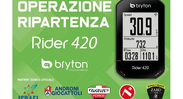 Per una nuova partenza dopo il fermo da COVID-19, dall’8 maggio 2020 Ciclo Promo Components con Bryton vuole rendere omaggio con un ciclo computer GPS Bryton Rider 420T (completo di sensori) ai primi 20 acquirenti di una nuova bici Bottecchia o Cipollini o Factor o KTM o Wilier.