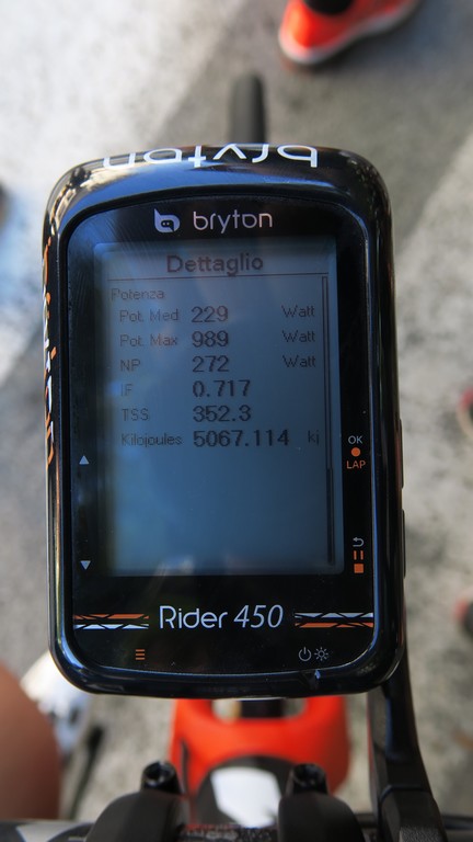 San Baronto – Duecentoquarantacinque chilometri e quasi 3500 metri di dislivello, 272 watt di potenza (normalizzata) e uno stress generato dall’allenamento (TSS) di 352 punti, valore ben superiore a quello che qualsiasi corridore mette in cascina al termine di tante corse. E ancora: sei ore e 51 minuti in sella, delle quali le ultime tre con il sole a picco e 35 gradi, culminate con il rush finale sulla “sua” salita test, il San Baronto da Lamporecchio. Ascesa scalata con un tempo record se si considera lo sforzo già effettuato fino a quel punto: 9 minuti e 45 secondi.