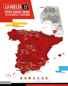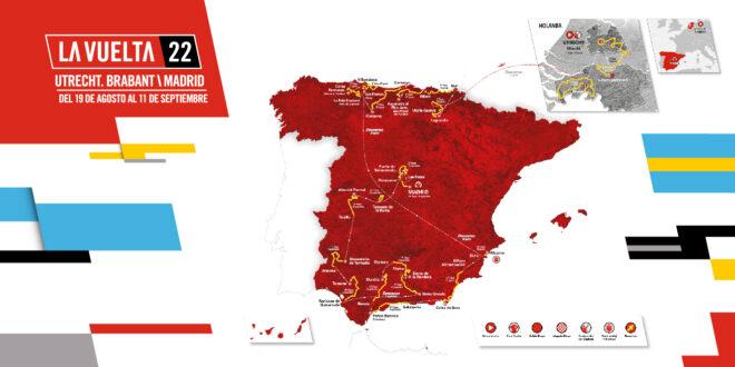 Stasera è stato presentato il percorso della Vuelta a España 2022, che si correrà dal 19 agosto all’11 settembre. La terza grande corsa a tappe della stagione prenderà il via dall’estero: a Utrecht (Paesi Bassi) andrà in scena uno cronometro a squadre di 23,3 chilometri. Anche le due successive frazioni saranno in terra olandese, senza particolari difficoltà altimetriche. Il rientro in Spagna è previsto nei Paesi Baschi con una salita finale a Laguardia, mentre il giorno successivo bisognerà stare attenti all’Alto del Vivero posto a 15 km dal traguardo.