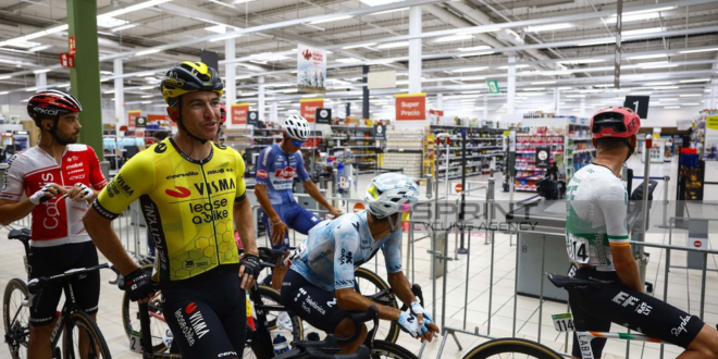 Questo inizio ha celebrato il 12° anniversario della sponsorizzazione da parte di Carrefour, con il supermercato chiuso per l’occasione. “Non sono qui per comprare uova, ma per combattere per una vittoria!” ha commentato un reporter di MARCA mentre i ciclisti pedalavano tra i carrelli e gli scaffali.